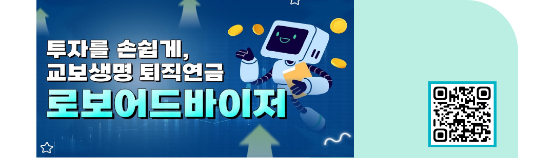 연금보험은 노후 생활자금을 마련하기 위한 장기 저축상품으로, 특정 연령에 도달하면 연금 형태로 수령 가능합니다. 연금보험에는 다양한 상품이 마련되어 있는데요. 특히 교보생명 퇴직연금은 로보어드바이저 서비스를 통해 각자의 투자 성향별로 자산관리를 도와드립니다. 너무 많은 상품에 고민이라면, 아래 배너를 클릭해 교보생명 로보어드바이저를 구독해 보세요!